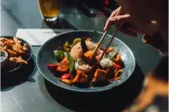 japanese dumplings, made by wrapping thinly-rolled dough around meat and vegetables. gyoza may be fried or steamed and are often served with a dipping sauce
